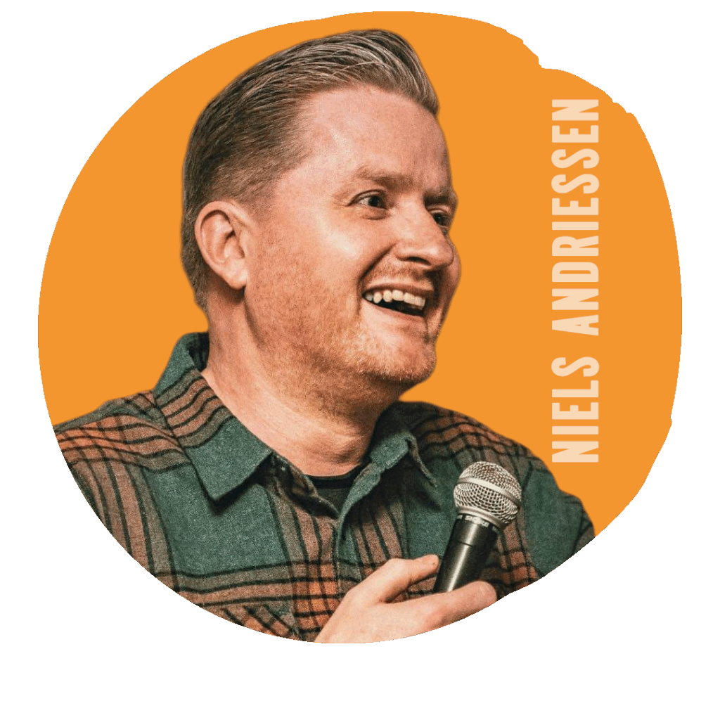 Niels Andriessen is een veelzijdige comedian uit Assendelft met een aanstekelijke energie en een vlijmscherp gevoel voor timing. Hij staat bekend om zijn sterke podiumpresentatie, zijn vermogen om sfeer te creëren én zijn gave om publiek en artiesten met elkaar te verbinden. Hoewel hij zelf ook regelmatig met eigen comedy-materiaal op het podium staat, is Niels vooral geliefd als MC (Master of Ceremony) en host van talloze comedy-avonden in heel Nederland.
